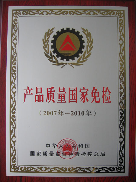 产品质量国家免检证书