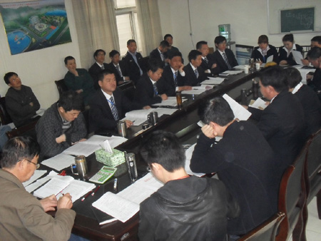 公司二O一二年工作会议于四月四日在公司会议室召开,参加会议有公司董事会、监事会领导、各厂、各部门,大会由公司办公室主任邱茂宏同志主持,董事长兼总经理余飞同志作了重要讲话,会议宣布了公司各部门主要干部任免,通过了各部门2012年度工作责任制等规章制度,听取了公司总监会主席赵体仁同志对经济责任制合同书有关条款的解释,各部门负责人与公司签订了2012年度经济责任制合同书。