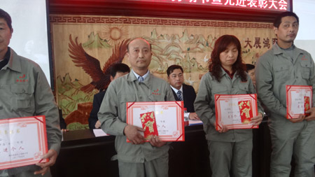 会上,领导班子成员时胜献宣读了公司对2012年度先进单位和先进个人的表彰决定,副总经理徐加林发表了热情洋溢的讲话,李志远、汪应国等五名同志作了典型发言。大会对六个先进单位和四十四个先进个人颁发了奖牌、奖金和荣誉证书。